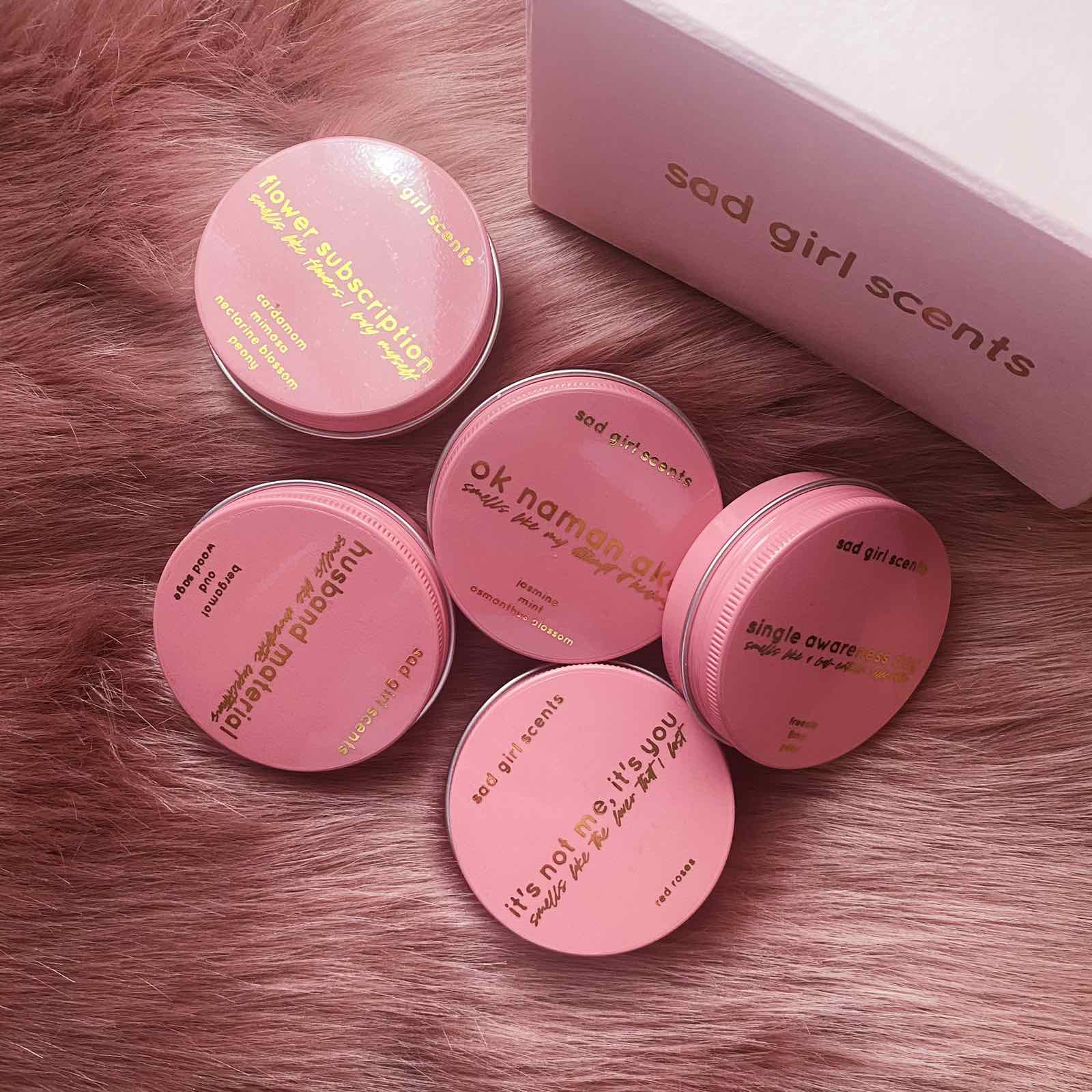 Can’t decide which scent to purchase? Try all the scents from the ‘walang jowa’ collection with this sampler set that comes in cute pink mini tin cans.